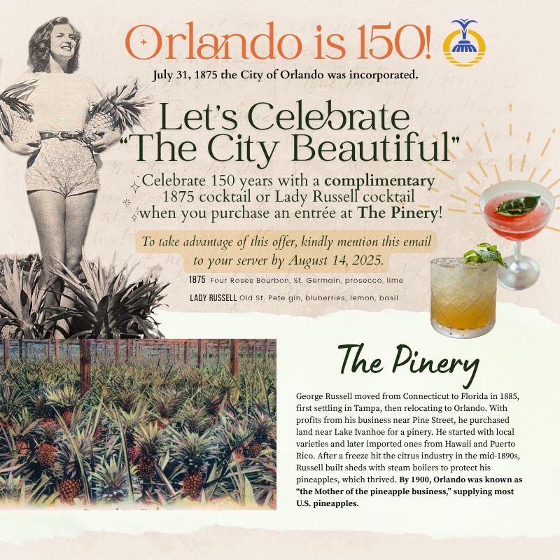 Location295 Northeast Ivanhoe BoulevardOrlando, FL32804Hours Mon, Tue, Wed, Thur 4:00 PM - 10:00 PM Fri, Sat 4:00 PM - 11:00 PM Sun 11:00 AM - 9:00 PM Find us on...Instagram pageContact usCall us at (407)-377-7576Write us at info@thepineryorlando.com